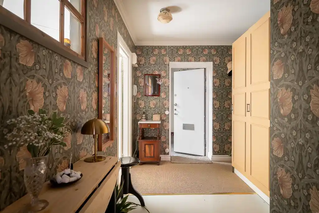 - Color & Mood: Light neutrals open space subtly like any white hallway wallpaper. Bold patterns energize and bring character, which is great for first impressions. Something like the floral wallpapers is the bold patterns type we are talking about.